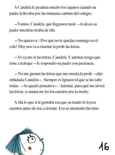 Empezamos un nuevo libro. En él vienen varias historias que vamos a ir leyendo. La primera historia se llama “A Candela le pesaban los zapatos”. Para hoy vamos a leer solo dos páginas, las cuales son el número 16 y 17. De estas dos páginas quiero un resumen de 3 o 4 líneas. Es muy sencillo y rápido de leer.