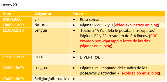 Tareas del jueves 23 de abril.