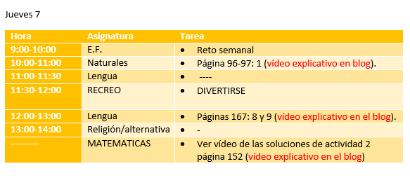 Tareas jueves 7 de mayo